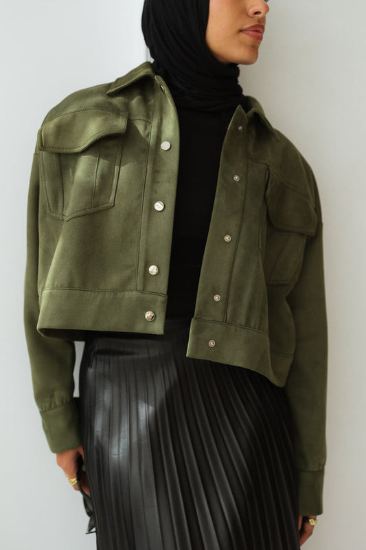 Suede Cropped Jacket in Olive